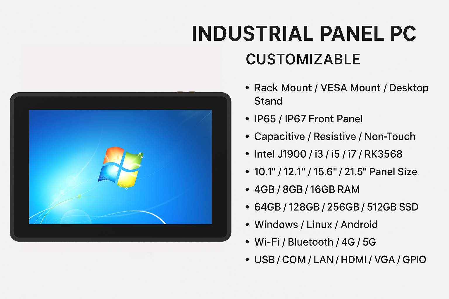 For Industrial Panel PC ODM services, we not only handle production but also provide full product design and development based on your requirements. This includes structural design, motherboard customization, I/O port layout adjustments, display and touch solution optimization, and overall specification modifications. We build fully customized industrial panel PCs tailored to your application scenarios and project needs.